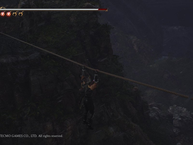 Au début du jeu, vous ne serez équipé que d’une seule épée de dragon comme arme principale. Cependant, au fur et à mesure que le jeu progresse, vous obtiendrez de nouvelles armes telles que des bâtons, des Kusarigama, des faucilles géantes, du tonfa, etc. que vous pourrez modifier au cours de la partie. Chaque arme a une animation d'attaque et un bouton de saisie de combo différents, il est donc important que vous maîtrisiez certaines armes afin de ne pas vous tromper dans leur mémorisation. Outre les armes de mêlée, Hayabusa est également renforcé par des armes à longue portée telles que des flèches et des fusils, ainsi que par des connaissances ninja appelées Ninpo. Les flèches et les armes à feu peuvent être utilisées librement sans limitation de munitions, tandis que Ninpo est limité par l'icône sous la barre de santé. En guise d'action défensive, vous pouvez repousser les attaques ennemies en maintenant le bouton L1 ou en effectuant Esquive, ce qui permet au personnage de se déplacer rapidement dans la direction dans laquelle vous allez. La deuxième série ne dispose pas encore de système de parade , il faut donc continuer à se déplacer activement dans le combat pour ne pas se faire encercler par les troupes ennemies qui continuent d'arriver. À chaque étape que vous franchissez, il y aura généralement un boss qui vous attendra. Étrangement, si dans des jeux similaires la présence du boss se fait à la fin de l'étape, dans ce jeu le boss peut effectivement vous défier au milieu de l'étape et après l'avoir vaincu, vous affronterez toujours à nouveau l'ennemi titulaire. Votre aventure ne se limite pas à l'action de combat à l'épée car à plusieurs reprises, vous aurez également droit à quelques simples séances de plateforme comme grimper à des échelles, vous balancer sur des mâts de drapeau, nager, courir sur l'eau ou encore sauter comme un ninja sur deux murs opposés.