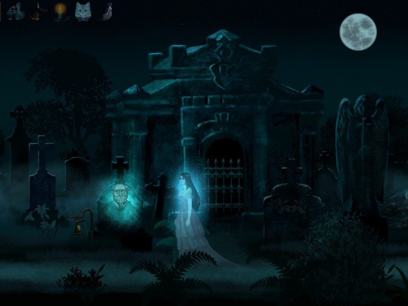 Vous incarnez Jane Darkday, fille de Lord et Lady Darkday, et vous avez été tuée. Vous vous réveillez telle un fantôme dans la crypte familiale, près des corps de vos parents. Vous ne vous souvenez plus de ce qui s'est passé, et l'objectif principal du jeu est de retrouver le meurtrier. Vous explorerez le manoir et ses environs, qui forment un vaste terrain de jeu détaillé d'une vingtaine de pièces défilant horizontalement. Vous trouverez de nombreux indices (dont certains sont des fausses pistes), découvrirez plusieurs secrets sur les membres de votre famille et les domestiques, et devrez comprendre quelles informations sont pertinentes et comment elles sont liées. Un laboratoire caché dans le manoir vous permet d'effectuer des tests et des recherches sur les preuves que vous trouvez. Le gameplay repose principalement sur l'exploration, la résolution d'énigmes et le raisonnement déductif. Les énigmes sont généralement assez simples, même s'il peut parfois être difficile de comprendre ce que le jeu attend de vous. Ceci est atténué par le fait que le texte inclut souvent des indices. Par exemple, lorsque cliquer sur un objet affiche une ligne indiquant « Il faudra approfondir l'enquête », vous savez alors que vous devrez le réexaminer avec un objet susceptible de révéler davantage d'informations. Vous êtes également accompagné d'un chat fantomatique qui vous donne des indices contextuels sur de nombreuses pièces et objets. Le chat vous indiquera également si vous avez entièrement exploré une pièce, ce qui vous permettra de concentrer vos efforts sur celles qui contiennent encore des mystères non résolus. Les indices peuvent être très explicites, mais il est important de noter qu'ils ne dispensent jamais du raisonnement déductif. Le jeu ne souhaite pas que vous restiez bloqué sur les énigmes, mais vous invite à résoudre le mystère et l'affaire du meurtre par vous-même. Cette conception convient parfaitement à un jeu de détective occasionnel. Le journal de bord enregistre efficacement vos tâches et les informations recueillies sur les suspects. Il est intéressant de noter que lorsque vous portez votre accusation à la fin, le jeu ne se contente pas de vous dire si vous avez raison. Il montre plusieurs scènes illustrant comment les meurtres auraient pu être commis si le suspect sélectionné était bien le meurtrier, puis vous demande si vous pensez que c'est bien ce qui s'est réellement passé ; vous devrez ensuite vous demander si les événements présentés correspondent aux preuves trouvée