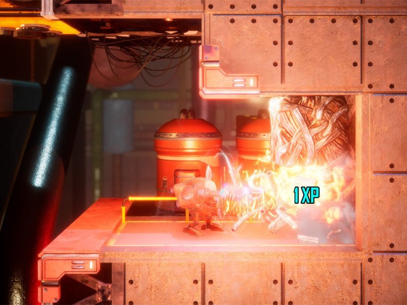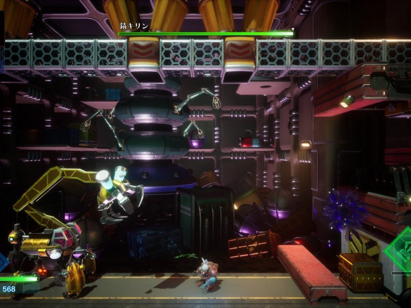 C'est dommage que la jouabilité soit aussi compliquée qu'une chaise IKEA à assembler. Les commandes sont peu réactives, l' animation du mech est plus maladroite qu'un lapin avec deux sacs à dos sur les épaules, et le système de combat qui devrait être l'épine dorsale de tout jeu 2D est embarrassant : les combats sont lents, imprécis et basés sur le classique "hit and run until he death". Bon, on comprend l'empathie du lapin qui frappe et se cache, et tirons aussi un voile sur la variété des armes qui font somme toute la même chose, mais faut-il vraiment passer des heures dans ces conditions ? L'IA ennemie ? Digne d'un dessin animé de série B : parfois ils tournent le dos au hasard, prêts à être embrochés, éliminant toute possibilité d'avoir une confrontation avec quelque chose qui est, même vaguement, un ennemi à notre portée. Passons aux boss , en espérant que ceux-ci soient plus amusants et variés : on va faire court, ou plutôt très court, ils sont tellement chaotiques que la seule tactique possible est l'espoir ! En gros, presque tous les boss dirigent une salle qui vous remplira de balles, et le jeu se transformera en un enfer de balles sans échappatoire. Il existe également un arbre de compétences pour améliorer le mech. Belle idée, si seulement ce n'était pas aussi déroutant qu'un manuel d'instructions écrit en elfique, au point que nous avons abandonné l'idée de le comprendre, et à un certain moment nous avons sélectionné des compétences aléatoires, juste pour rire et pour compléter cette agonie dans un style furry.