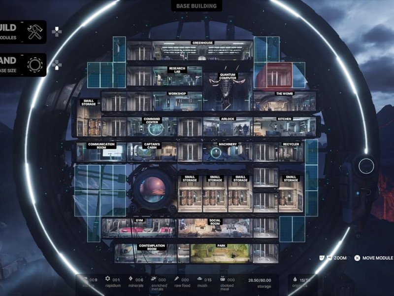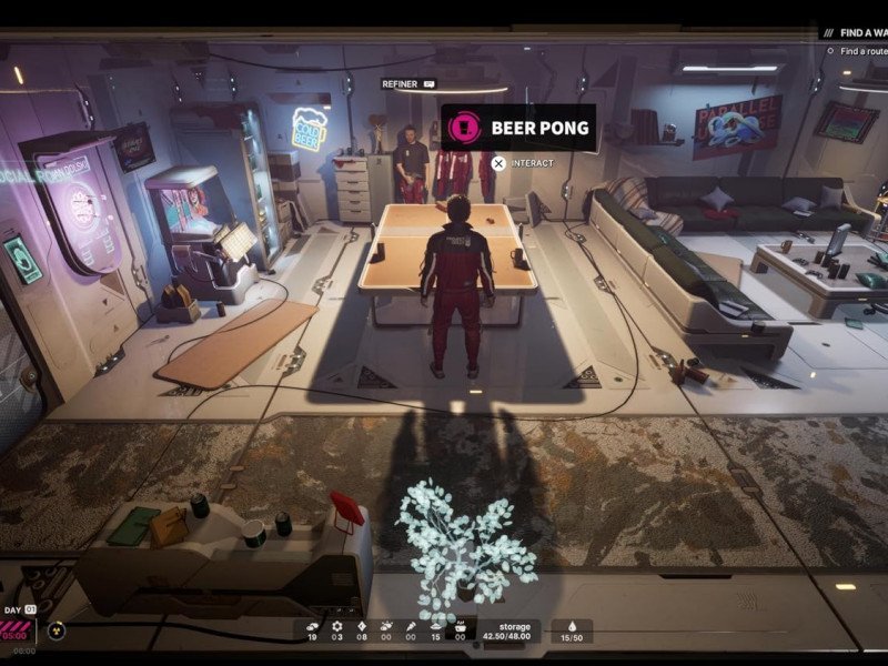 Le gameplay des Alters repose sur trois piliers : l'exploration, la gestion de la base et l'interaction avec les Alters. Commençons par l'exploration : avec Jan, nous contrôlons la base-machine rotative pour rester dans l'ombre et nous aventurer à l'extérieur pour scanner les gisements, collecter des ressources (organiques, métaux, minéraux, Rapidium) et gérer les anomalies radioactives . Ces créatures/globes libérés du sol peuvent être neutralisés avec le « Luminator » (une arme/outil qui « restaure » ??leurs sources d'énergie). L'exploration offre occasionnellement des missions de combat léger, mais reste principalement axée sur la survie. La gestion des ressources et du temps est cruciale : chaque activité (extraction, construction, réparation) a un coût en temps réel, et chaque aube peut être fatale : une seconde réelle = une minute de jeu. Il faut construire des structures sur une grille rotative de type Tetris, connecter des réseaux énergétiques, cuisiner et assurer la maintenance. D'un certain point de vue, cependant, il faut souligner que le gameplay peut, à la longue, devenir répétitif. Ensuite, il y a nos Alters . Chacun possède des compétences spécifiques : le Mineur est plus efficace dans les extractions, le Scientifique débloque des technologies, le Technicien répare plus rapidement. Le problème ? Chaque Alter a besoin de soins émotionnels : s'il est négligé, il peut tomber malade, déprimer, voire s'automutiler. À travers des dialogues profonds, on se souvient de Jan et d'un Alter jouant au beer-pong ou regardant des vidéos comiques trouvées dans des épaves, des sketches qui humanisent la routine. L' équilibre entre ressources, temps et humeur des clones est complexe mais bien orchestré : chaque décision a des conséquences à la fois managériales et narratives, créant un système de jeu intégré, riche en tension et en réflexion personnelle. Le jeu est localisé en français, donc aucune émotion n'est perdue.