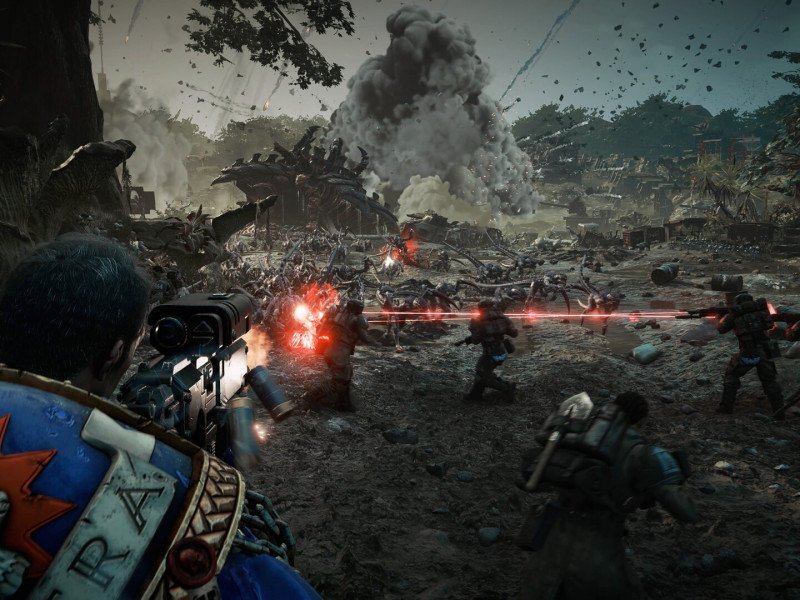 D'un point de vue artistique, Space Marine 2 est un régal pour les yeux. Les environnements sont détaillés et atmosphériques, capturant parfaitement l'esthétique sombre et gothique de l' univers de Warhammer 40,000 . Les armures, les armes et les ennemis sont minutieusement conçus, affichant un niveau de détail élevé qui rend chaque rencontre visuellement satisfaisante. Les effets de lumière et de particules contribuent à une expérience immersive et intense. D'un point de vue technique, nous ne nous attendions à rien de différent de ce que Saber Interactive propose . Warhammer 40,000: Space Marine 2 est conçu pour fonctionner au mieux sur des machines puissantes et performantes, mais le titre s'en sort également très bien sur les consoles actuelles. Quelques bugs et blocages sporadiques ont été constatés, mais nous sommes certains que le prochain patch les corrigera. Nous avons toutefois été déçus par la rareté des ennemis, avec seulement sept ou huit types différents tout au long de la campagne. Trop peu pour créer la variété nécessaire pour rompre la répétitivité qui gangrène le jeu. En tenant la manette, le retour de chaque tir et la différence entre les différentes armes sont perceptibles et procurent une sensation agréable. Le son est tout aussi impressionnant. La bande-son épique accompagne avec justesse nos exploits sur le champ de bataille, tandis que les effets sonores ajoutent du poids et de l'impact à chaque coup porté ou reçu. Le doublage, disponible en plusieurs langues (dont le français), offre des performances convaincantes qui enrichissent la personnalité des personnages principaux.