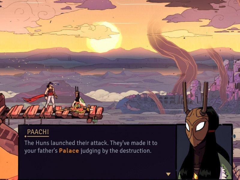 Toujours concernant les armes dans The Rogue Prince of Persia, elles peuvent être améliorées , comme dans tout roguelite. Il existe des points sur la carte où l'on peut améliorer son arme en consommant des orbes violets. On en trouve partout et ils seront utiles pour trouver le forgeron. Oui, car comme dans Dead Cells , il est possible de demander au forgeron de créer des armes dans le HUB du jeu, accessible à chaque mort . Quant à la monnaie du jeu, elle est principalement utilisée dans les boutiques trouvées en exploration, comme dans Hadès ou The Binding of Isaac . En plus d'acheter de nouvelles armes, on peut également en recréer trois nouvelles. Jusqu'à présent, l'intrigue de The Rogue Prince of Persia était centrée sur le prince qui tentait de sauver son peuple et son royaume d'une attaque orchestrée par les Huns, qui, soit dit en passant, sont dotés d'énormes pouvoirs chamaniques. Heureusement, notre arrivant dispose également de sa magie temporelle, qu'il utilise pour équilibrer les choses. Nous avons déjà pu découvrir la personnalité du héros, ainsi que sa façon de gérer la mort et le retour dans le temps dans les épisodes précédents. Le jeu est essentiellement un roguelike, ce qui signifie que chaque tentative d'atteindre la fin est unique, et que mourir signifie perdre tout ce que l'on a et recommencer depuis le début. Cependant, nous gardons quelques ressources qui peuvent être utilisées pour améliorer notre personnage et son équipement.