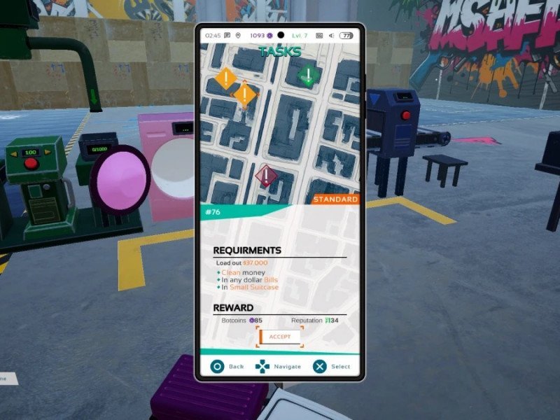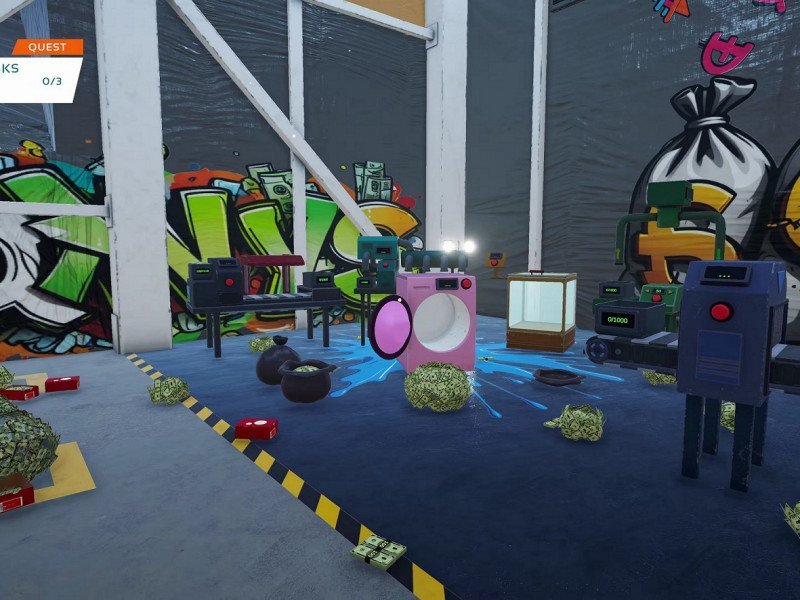 Développé et produit par NOSTRA Games, Money Laundering Simulator est un simulateur de gestion de blanchisserie ... d'argent sale ! Le jeu nous offre la possibilité de gérer notre propre établissement, située dans un sous-sol forcément. La réception des contrats se fait via un smartphone. Nous recevons les commandes par un tuyau et les expédions par un ascenseur. La monnaie utilisée ici sert à améliorer la blanchisserie et à acheter des stocks. Ces stocks sont divisés en deux catégories : ceux où les commandes seront collectées et ceux où le matériel est utilisé pour travailler avec des espèces. Après avoir reçu un contrat, une commande contenant une liste de travaux et l'argent lui-même arrive. Le cash est dissimulé dans des boîtes à chaussures, des sacs poubelles, un matelas, etc. D'importantes quantités d'argent liquide sont tachées d'huile, de sang, de saleté et de liquides. Selon la tâche, il faut laver, sécher, repasser et trier, et au final, les liasses soigneusement triées sont réparties dans des boîtes, des sacs de sport ou des valises de voyage. Le système de progression vous permet de débloquer progressivement de nouvelles améliorations et fonctionnalités. Pour un accès complet, vous devrez améliorer votre réputation jusqu'au niveau 9. Après le niveau 15, le dernier niveau d'amélioration s'ouvre et les améliorations suivantes n'apportent aucun changement. Les commandes sont classées sur la carte par ordre d'urgence : vert (simple), jaune (standard, sans minuteur), rouge (urgent). Le titre ne comporte aucune intrigue, mais se concentre sur la progression de votre business à travers un système de mise à niveau et de popularité. La satisfaction du client influence directement le succès du lieu, nécessitant une attention particulière à la qualité du service et à la rapidité de préparation.