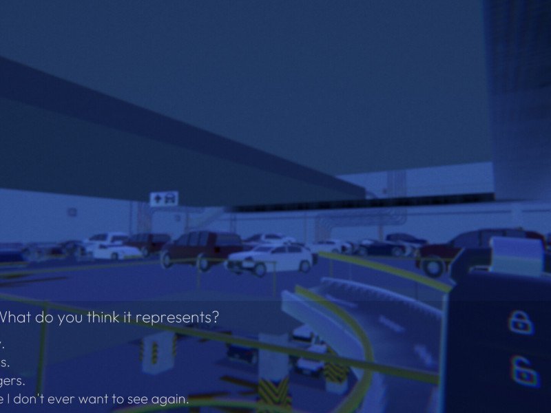 Imaginé par Interactive Dreams et porté sur consoles par Take It Studios, A Dream About Parking Lots se veut une véritable expérience de vie, un voyage à la recherche de quelque chose de profond. Ou peut-être simplement de votre propre voiture. Qui n'a jamais perdu sa voiture dans un parking ? Un mauvais étage dans un immense parking, une situation courante, ou simplement une négligence, peuvent nous conduire à errer comme des zombies à la recherche de notre voiture. Heureusement, la technologie moderne a équipé les voitures de télécommandes qui les déverrouillent et émettent des sons et des lumières. Ainsi, même le conducteur le moins attentif peut reprendre le volant Si vous vous demandez pourquoi nous parlons de voitures et de parkings, eh bien, c'est précisément le thème central de A Dream About Parking Lots. Les joueurs incarnent un individu anonyme, simplement appelé « Dreamer », qui consulte un thérapeute. Son rêve récurrent est de se retrouver dans d'immenses parkings, cherchant sa voiture à l'aide d'une simple télécommande . Ce principe, qui constitue le cœur du jeu, se traduit par un simulateur de marche accompagné de dialogues dignes d'un roman visuel. Les joueurs devront se frayer un chemin à travers des parkings labyrinthiques, esquivant des barrières tout en essayant de monter dans leurs véhicules. La télécommande ne réagira que lorsqu'ils seront suffisamment proches, car sa portée est limitée. Pendant ce temps, le thérapeute leur posera diverses questions sur leur état, afin de comprendre ce qui se cache derrière leurs rêves . Une structure intrigante sur le papier, mais qui ne décollera jamais vraiment.
