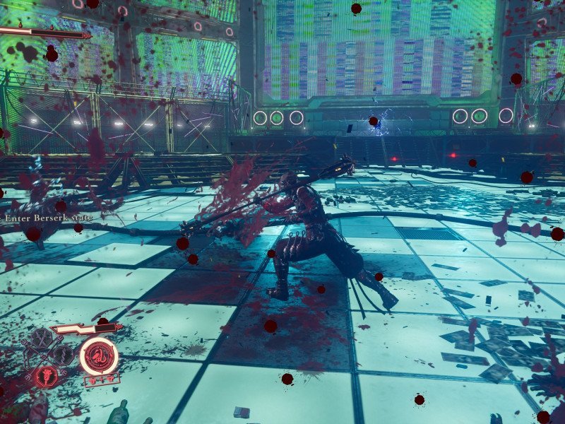 La direction artistique, cependant, fait son possible pour masquer ces défauts. L'esthétique sombre et futuriste fonctionne globalement bien, et le mélange de technologie et de délabrement urbain crée une atmosphère unique. Lorsque le jeu s'inspire du folklore japonais pour la conception des ennemis et des boss, le résultat est spectaculaire ; les créatures mythologiques sont inspirées et mémorables. Le problème, c'est que ces moments d'inspiration sont entrecoupés de trop de moments fades. La violence visuelle, véritable marque de fabrique de l'expérience, mérite une mention spéciale. Le sang est omniprésent, les démembrements sont détaillés et brutaux. Les fins sont une véritable explosion de sang, avec des plans soigneusement conçus pour souligner chaque décapitation et amputation. Yakumo finit littéralement couvert de sang après les combats les plus intenses, et le sol est jonché de membres sectionnés et de flaques rouges. Cet élément, en apparence marginal, contribue énormément à rendre l'action plus intense et satisfaisante . Aucun autre jeu d'action, à l'heure actuelle, ne peut se targuer d'un tel niveau de violence visuelle. La conception sonore est à la hauteur. Le retour sonore des coups est solide et satisfaisant, et les bruits de démembrement sont viscéraux et percutants. La bande-son mêle rock, heavy metal, musique électronique et sonorités typiquement japonaises, créant un accompagnement parfait à l'action frénétique . Pendant les combats, la musique gagne en intensité, en rythme et en volume, soulignant chaque affrontement de manière convaincante. Le point culminant est atteint avec les combats de boss, dont les thèmes musicaux particulièrement réussis augmentent la tension. La localisation française est complète pour tous les textes du jeu. Le doublage est uniquement disponible en anglais ou en japonais, avec la possibilité d'activer les sous-titres italiens. C'est un choix compréhensible compte tenu du budget, mais certains auraient certainement apprécié un doublage français. Le verdict technique est donc mitigé. D'un côté, on retrouve une fluidité parfaite (indispensable pour ce type de jeu), de l'autre, des graphismes médiocres qui trahissent les attentes actuelles. On dirait qu'un aspect tente de compenser l'autre, plus faible. Le gameplay extraordinaire compense la qualité globale médiocre. Ceux qui jouent principalement pour l'action frénétique ne seront pas gênés, mais ceux qui recherchent des graphismes percutants seront un peu déçus.