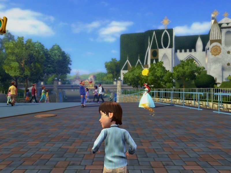 Développé par Frontier Entertainment, Kinect Disneyland Adventures est un titre destiné quasi exclusivement aux enfants. Entièrement jouable avec la caméra, le titre permet d'évoluer dans une reproduction très fidèle du parc Disneyland située à Anaheim aux Etats-Unis. Vous pouvez vous y promener librement et discuter avec les mascottes Disney présentes dans les lieux (Mickey, Donald, Dingo, Alice, etc) simplement en agitant la main. Vous pourrez également les prendre en photo, leur demander de signer un autographe, réaliser une petite danse, ou bien faire un câlin. Fréquemment, ces personnages vous demanderont d'effectuer des missions. Souvent il s'agit d'amener un objet d'un lieu à l'autre, et les tâches demeurent très basiques et vites répétitives. Mais qui dit parc dit aussi attraction. En passant devant la carte vous pourrez pénétrer dans différents mini-jeux tirés des célèbres licences Disney. Il y a de quoi faire.