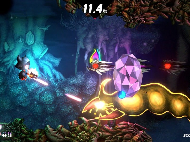 Il ne faut pas sous-estimer l'importance de la conception du niveau, un élément fondamental pour l'ensemble du concept du produit. Les développeurs utilisent continuellement des éléments d'arrière-plan et de nouveaux obstacles, créant ainsi une certaine curiosité. NeverAwake réussit à lier l'univers du jeu au gameplay en créant un contexte narratif supplémentaire au sein des phases de jeu, une œuvre qui démontre une utilisation complète de ce média interactif, chose très difficile à réaliser pour les studios et les produits de toute sorte. En termes de jouabilité, NeverAwake est agréable à jouer : Le contrôle du personnage est simple et intuitif, sans aucun décalage d'entrée gênant. En ce sens, il est donc très confortable de combattre et d'esquiver les ennemis dans l'univers du jeu, dans une action à la fois rapide mais compréhensible pour l'œil humain. Une mention doit évidemment aller aux combats de boss, l'un des nombreux mérites de cette œuvre. Ils ont tous une dynamique unique, dans un défi où l'objectif n'est jamais immédiatement compréhensible et où le joueur doit raisonner en étudiant le schéma des attaques et les éventuels points faibles. Un élément supplémentaire qui confirme le soin particulier apporté à chaque facette du jeu. NeverAwake a un autre mérite, lié à la personnalisation permise au joueur : au cours du jeu, il est possible de débloquer une série d'améliorations pour le petit protagoniste, qui peuvent augmenter le nombre de vies disponibles, la portée de la collecte de cristaux, l'invulnérabilité du tableau de bord et d'autres caractéristiques similaires. Il existe également des armes spéciales qui peuvent être débloquées et améliorées pour devenir encore plus mortelles.