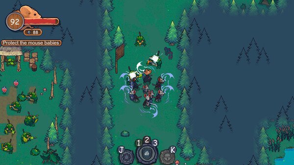 MiceGard est un titre original à sa manière , qui se présente presque comme une stratégie d'action en temps réel , où les réflexes du joueur doivent nécessairement être combinés avec une bonne conscience du positionnement et des mécaniques de jeu. L'histoire de MiceGard part de prémisses bonnes et intéressantes, qui ne sont cependant pas pleinement exploitées. Tout commence lors de la fête de Beltene, en temps de paix. Une paix qui est interrompue par l'enlèvement de quelques enfants, juste pendant la fête. Le protagoniste et une poignée de guerriers se lancent alors à la recherche des pauvres souris disparues, parvenant à les retrouver en peu de temps. Mais à leur retour, le village est détruit et les habitants ont disparu. Cela devient l’incipit d’une intrigue qui mélange la mythologie nordique avec des éléments fantastiques de conte de fées réussis . C'est juste dommage que le titre ne soit pas capable d'évoluer au-delà du concept initial , présentant au joueur une atmosphère intéressante et fascinante, mais terriblement sous-exploitée dans la narration. Le jeu propose un gameplay simple et efficace : vous partez d'un HUB central, le village, à partir duquel vous acceptez des missions. Ces derniers sont des niveaux linéaires petits et assez grands, où vous pouvez réaliser divers objectifs. La gestion du HUB central s'avère être un point d'appui important, mais trop simple, du gameplay. Les pièces sont obtenues lors de missions et peuvent être dépensées pour acheter de nouveaux bâtiments . Ceux-ci donnent des buffs passifs ou de nouvelles capacités . Un concept intéressant, qui n'est cependant jamais exploré correctement : peu de bâtiments et de capacités, combinés à un manque de mécaniques de gestion (même simples comme celles de Cult of the Lamb ou Dave the Diver ), rendent ce composant de gameplay immature et sous-développé.