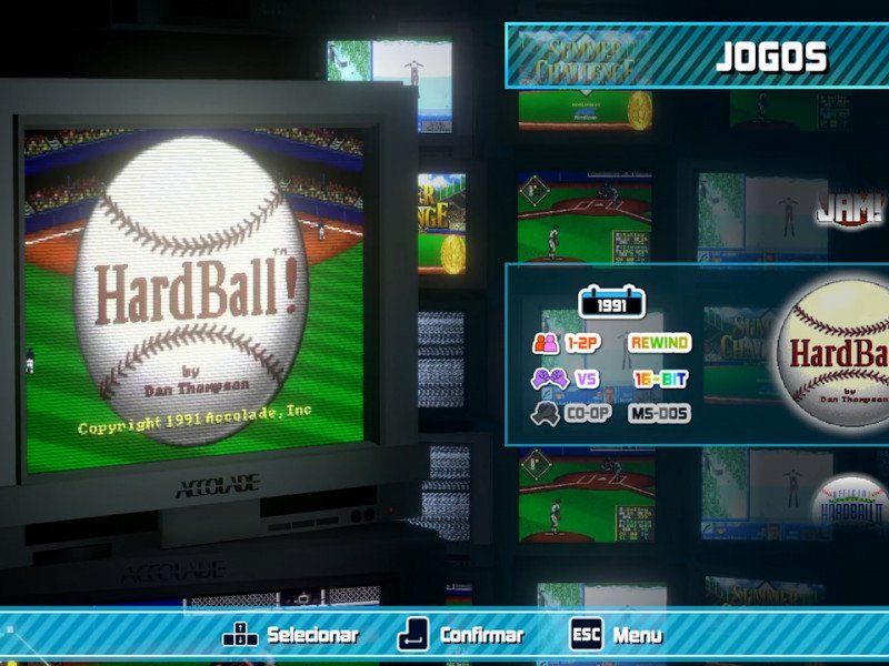 Né de la collaboration entre QUByte Interactive et Atari, Accolade Sports Collection est une grande opération nostalgie, qui regroupe dans un seul package cinq jeux de sport édités sur des consoles historiques telles que le Commodore 64 et la SEGA Mega Drive. Le titre phare d'Accolade était sans aucun doute Test Drive , mais la société acquise plus tard par Infogrames est également devenue célèbre pour d'autres titres sportifs. La collection Accolade Sports comprend donc Hardball 1 et 2, Hoops Shut Up et Jam ! et les collections « Olympiques » Winter Challenge et Summer Challenge . Les deux premiers titres sont consacrés au baseball, le troisième au basketball tandis que les deux Challenges se concentrent, comme vous pouvez facilement l'imaginer, sur les sports d'hiver et les disciplines olympiques. Tout est fidèlement reproduit à ce qui se voyait il y a plus de trente ans : graphismes rétro, effets sonores à l'ancienne et ce côté boisé typique de l'époque. QUByte Interactive, en plus d'ajouter des arrière-plans pour adapter les écrans 4:3 aux téléviseurs modernes, a choisi de ne pas déformer le style original des œuvres d'Accolade. Chaque titre inclut les fonctions classiques de ces restaurations : sauvegardes manuelles, fonction de rembobinage et un livret d'instructions numérique qui vous expliquera comment jouer au mieux . En ce sens, nous avons été surpris par l'absence d'un petit tutoriel visuel, qui permettrait d'endoctriner les nouveaux venus dans les jeux. Une petite explication aurait évité de faire défiler dix à quinze pages de texte vraiment longues à digérer mais utiles pour apprendre à mieux jouer.