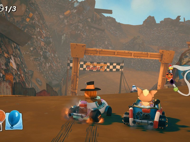 Les commandes sont précises et réactives, ce qui profite aussi bien aux débutants qu'aux joueurs expérimentés. La mécanique de drift rappelle beaucoup Crash et est absolument indispensable pour terminer dans les premières positions, en particulier sur les pistes avec des virages serrés. Le niveau de difficulté augmente modérément contre le CPU, vous permettant de vous améliorer en permanence et peut parfois être un véritable défi, ce qui n'est pas toujours le cas avec d'autres jeux. Par rapport aux autres représentants du genre, il est également à noter que le jeu met particulièrement l'accent sur les power-ups fous dont le poids classique deseize tonnes, assurent des courses chaotiques et rappellent l'imprévisibilité de Mario Kart, mais avec la différence que vous pouvez toujours emporter deux power-ups avec vous, et l'ordre de ceux-ci peut également être modifié, car tous les power-ups ne sont pas vraiment utiles dans toutes les situations. Graphiquement, le jeu se présente dans un style bande dessinée révisé qui souligne l'atmosphère humoristique. Les environnements colorés rendent hommage à l'histoire de la série ainsi qu'aux personnages invités, même si l'utilisation de la technologie moderne est perceptible, rien ne semble vraiment à la hauteur des standards actuels. La bande sonore est entraînante et s'adapte parfaitement au rythme rapide des courses, tandis que les effets sonores, tels que le rugissement des moteurs, soulignent acoustiquement l'action.