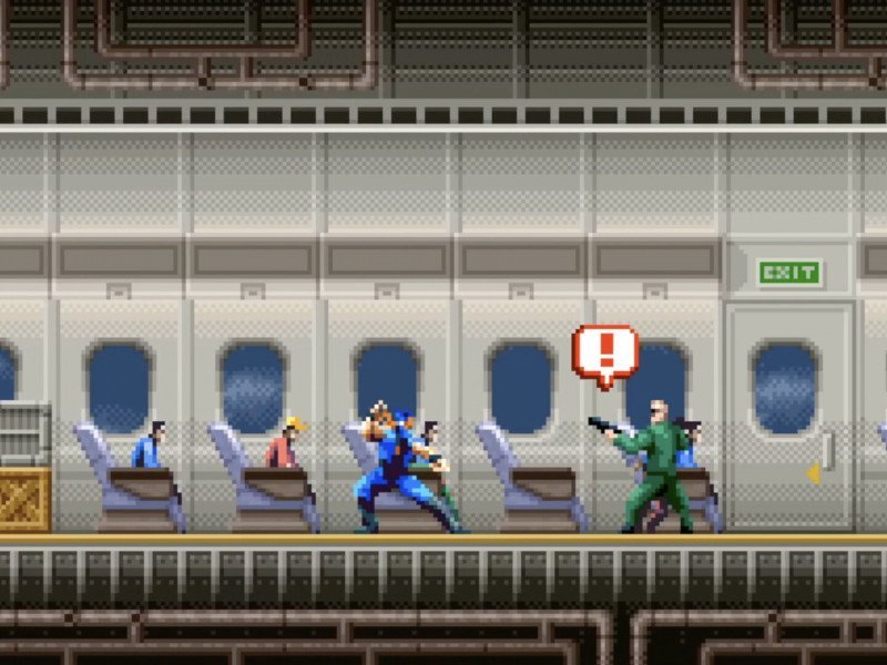Le cœur battant de Ninja Five-O est sans aucun doute son gameplay , qui combine des éléments de plateforme avec des combats d'action et un système de mouvement inspiré de jeux comme Bionic Commando . Joe Osugi peut courir, sauter, attaquer avec son katana et lancer des shuriken pour frapper les ennemis à distance. Cependant, l'élément distinctif du gameplay est le grappin , qui vous permet de vous attacher aux plates-formes et aux plafonds pour vous déplacer rapidement et surmonter des obstacles autrement insurmontables. Cette mécanique ajoute une couche stratégique à la conception du niveau, obligeant les joueurs à maîtriser le timing et la direction pour éviter les pièges et atteindre les hauteurs. Les niveaux sont intelligemment structurés, alternant des sections d'exploration pure avec des moments où vous devez lutter contre des vagues d'ennemis ou résoudre de petites énigmes environnementales. En plus d'éliminer des adversaires, le joueur doit également sauver des otages, ce qui ajoute une couche de défi supplémentaire : attaquer par négligence peut conduire à leur élimination accidentelle, entraînant une pénalité. Cela nécessite une approche plus tactique que les jeux de plateforme d'action traditionnels, récompensant ceux qui peuvent équilibrer la vitesse et la précision dans leurs mouvements. Dans sa version remasterisée , Ninja Five -O introduit quelques améliorations pour rendre l'expérience plus accessible aux nouveaux joueurs. Des fonctionnalités telles que la sauvegarde rapide et la possibilité de remonter le temps réduisent la frustration liée aux erreurs, vous permettant d'expérimenter différentes stratégies sans avoir à répéter des niveaux entiers. Cependant, le jeu reste fidèle à sa nature originale, offrant une expérience stimulante qui nécessite de la patience et des compétences pour être maîtrisée. Certaines sections peuvent être frustrantes en raison d'un level design qui, bien que bien pensé, punit parfois de manière excessive même les petites erreurs.