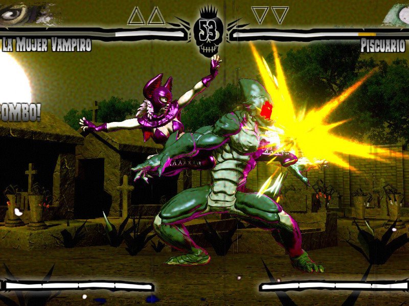 Développé par Seashell Studio, Mostroscopy est un jeu de combat 1 contre 1 dans le style de « Tekken » mais avec un budget beaucoup plus faible et axé sur la mise à l'écran d'une série de monstres et d'atmosphères folkloriques mexicaines entre l'horreur des années 50 et la Lucha Libre. Le jeu donne un impact immédiat et visuel absolument distinctif et extravagant. Parmi les premières choses que l'on voit, à savoir le menu principal, il est clair où le titre veut nous emmener : dans le temps et d'une manière excessivement nostalgique et rétro. Dans le détail, l'ensemble de l'œuvre s'inspire de choses qui vont bien au-delà du film de série B mais qui, malgré tout, restent connus des amateurs du genre. Mais pas seulement cela, aux monstres de toutes sortes, pour une raison inexplicable autre que celle liée au folklore susmentionné, s'ajoutent une série de lutteurs masqués en plein style Lucha Libre . Non seulement cela, certains combattants sont eux-mêmes des monstres, comme la « femme vampire » qui, en plus d’être masquée, combat également en bikini… mais ce sont des détails. Voulant mieux explorer les types de monstres qui sont le véritable cœur battant du titre, nous avons une sorte de « parodie » extravagante de toutes les créatures les plus célèbres. Il y a une sorte de monstre de Frankenstein sauf qu'il a une bouche sur le ventre et un seul œil géant positionné sur sa poitrine... il y a aussi une louve- garou avec un nom mignon, une certaine « Kitty ». Et que dire de l'homme-poisson qui parle en vers qui sont à leur tour transcrits avec des symboles indéchiffrables ? Il y a aussi un robot gigantesque et quadrangulaire qui se bat avec des mouvements absurdes et en utilisant trop sa « porte » de type réfrigérateur. En bref, la liste est vaste, variée et véritablement amusante à découvrir dans toute sa nature bizarre et difficile à prévoir.