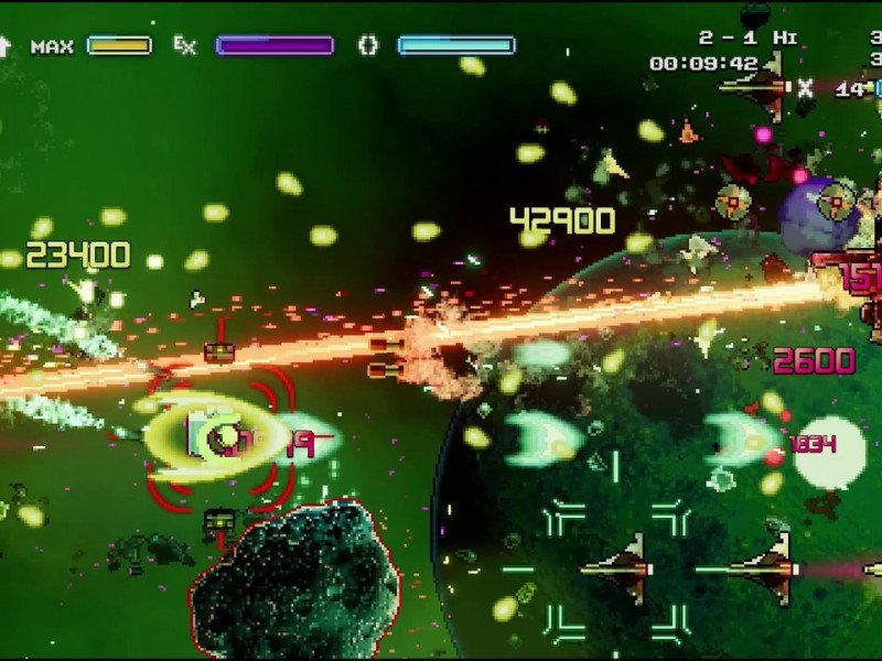 Développé par HitP Studio, Schildmaid MX est un shoot'em up spatial en 2D à défilement horizontal, proposant un gameplay original et unique basé sur les boucliers. Schildmaid MX ne propose pas de scénario ; au contraire, le jeu se concentre presque exclusivement sur l'expérience visuelle, communiquant directement par l'image et, surtout, par des projectiles lumineux. En somme, il s'agit d'une expérience arcade à part entière, mais conçue de manière transversale et étonnamment complexe. Ce n'est pas un hasard si le jeu débute par un tutoriel ludique, complet et très satisfaisant. Pas à pas, nous découvrons les mécaniques de jeu uniques que nous explorerons dans la section suivante, nous permettant ainsi de débuter l'aventure spatiale proposée par Schildmaid MX. Nous aurons à notre disposition trois types de vaisseaux, chacun possédant ses propres caractéristiques et offrant différentes manières d'aborder les mêmes aventures, conformément aux standards du genre. De plus, le jeu propose une série de niveaux à débloquer progressivement à votre rythme, à condition d'avoir accumulé suffisamment de monnaie virtuelle. Ces niveaux forment une sorte de campagne à la difficulté variable, et il existe également un mode EX , qui offre une interface similaire mais avec des options de jeu supplémentaires. En bref, les passionnés du genre, en quête d'une difficulté croissante et d'un niveau de difficulté stimulant, seront comblés.