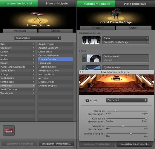 Une autre grosse évolution se retrouve dans les propriétés associées aux pistes audio ou midi : une nouvelle présentation plus claire et plus simple. Il est désormais très aisé de basculer entre paramètres des instruments (pour les pistes midi) ou des échantillons (pour les pistes audio) et le panneau des effets, toujours aussi bien fourni. On remarquera également le soin tout particulier - tant visuel que fonctionnel - apporté aux simulateurs d'amplis et de pédales pour les pistes de guitares et de basses.