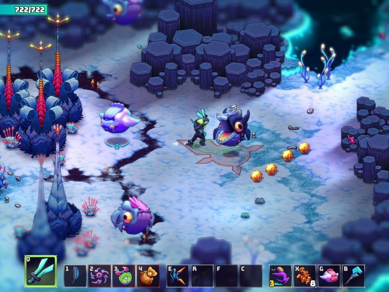 Le cœur battant de Crashlands 2 réside dans son gameplay , qui combine exploration, artisanat et combat dans un monde ouvert dynamique. Dès les premiers instants, le jeu présente au joueur un système d'artisanat intuitif mais profond, qui vous permet de créer une large gamme d'objets, des armes aux outils, en passant par des éléments décoratifs pour votre base. La collecte de ressources est facilitée par une conception du monde qui rend chaque matériau facilement découvrable, réduisant ainsi la frustration souvent associée à ce type de mécanique. L'exploration est encouragée par la présence de biomes diversifiés, chacun avec ses propres créatures, ressources et secrets à découvrir. Woanope est une planète vivante, avec des écosystèmes interconnectés et des créatures qui interagissent les unes avec les autres de manière surprenante. Par exemple, nous pourrions être témoins de prédateurs chassant des proies plus petites ou d’événements météorologiques influençant le comportement de la faune locale. Le combat, bien que simple dans ses mécanismes de base, offre un défi croissant à mesure que vous progressez dans le jeu. Chaque ennemi possède des schémas d'attaque uniques, obligeant le joueur à adapter ses stratégies et à tirer le meilleur parti de l'équipement à sa disposition. De plus, la possibilité d'apprivoiser certaines créatures et de les faire combattre à nos côtés ajoute une couche supplémentaire de profondeur au gameplay . Un aspect particulièrement réussi est la construction de votre propre base. En plus de servir de refuge, la base devient une plaque tournante pour l'artisanat , l'élevage et la socialisation avec les personnages que vous rencontrez. La personnalisation est étendue, vous permettant de créer des environnements qui reflètent véritablement le style et les préférences du joueur.