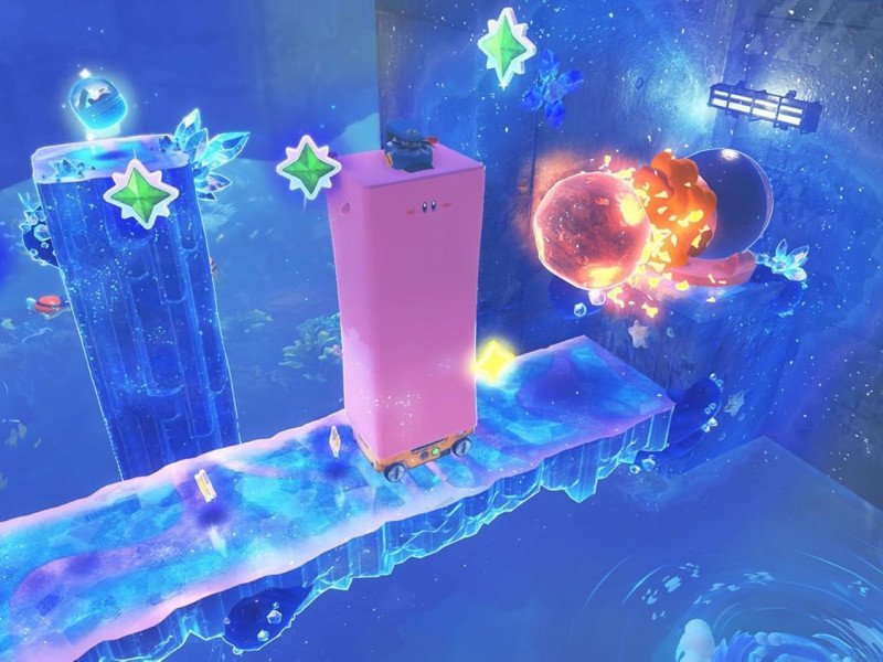 La première chose à savoir au sujet de Kirby et le monde oublié est que, comme les autres jeux de la franchise, il s'agit d'un titre dans lequel l'exploration joue un rôle majeur. Lorsque le titre a été présenté pour la première fois, certains ont spéculé que le jeu serait un monde ouvert, ou quelque chose de similaire à Super Mario Odyssey, et rien ne pourrait être plus éloigné de la vérité : ce jeu est un Kirby à part entière, avec ses évolutions respectives, bien sûr (comme le défilement en trois dimensions, ou de nouvelles mécaniques que nous aborderons plus tard), mais conservant toutes les marques de la franchise, le faisant évoluer avec l'aide de la puissance de la Nintendo Switch dans un titre qui est meilleur que tout ce que la série a jamais vu auparavant. Bien sûr, il ne s'agit pas d'un jeu à monde ouvert, mais d'un jeu avec un monde divisé par des niveaux construits en détail pour que nous nous amusions. Pour terminer cette section, nous devons mentionner que Kirby dispose de nouvelles capacités de copie jamais vues auparavant, donc même les fans les plus hardcore du personnage seront surpris par certaines des possibilités qui s'ouvriront tout au long de l'aventure. Cependant, la vedette sera presque entièrement volée par la transmorphé, un nouveau pouvoir qui permet à Kirby de se transformer en divers objets du quotidien, comme une voiture, un escalier ou une ampoule, ce qui donne lieu à des énigmes et des situations aussi amusantes qu'intéressantes.
