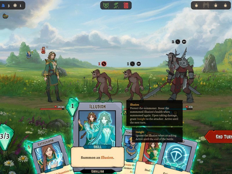 Développé par 1C Game Studios et édité par For-Games CR LTD, Deathless: The Hero Quest est un roguelike de construction de deck de cartes, basé sur une structure de combat au tour par tour assez classique. Entièrement en 2D, il se déroule dans un univers médiéval-fantastique. Deathless: The Hero Quest ne brille pas par son scénario, et c'est bien dommage. En résumé, nous évoluons dans un monde fantastique nommé Belosvet, et notre mission consiste à vivre quatre « campagnes » qui s'apparentent à un parcours initiatique. Quatre, comme les quatre héros. Chacune a sa propre quête, ses propres dialogues, ses propres choix à faire et, bien sûr, son propre style de combat, qui se reflète ici dans le type de cartes qui composeront notre deck. Pour en revenir au récit, Deathless: The Hero Quest n'exploite pas pleinement son potentiel. S'inspirant d'un folklore slave méconnu et arborant un style graphique saisissant, le jeu peine à raconter une histoire convaincante, victime de sa propre structure procédurale. De plus, il est indéniable que le gameplay prend une place prépondérante, au détriment du récit et des personnages. C'est d'autant plus regrettable que le bestiaire et certains passages intrigants recèlent un potentiel certain. Ces étapes sont indiquées par les choix qui s'offrent à nous : des cartes graphiques accompagnées de courts textes décrivant la suite. Chaque choix façonnera littéralement le parcours du héros jusqu'à l'inévitable affrontement final contre le boss. Malheureusement, après quelques parties, l'intérêt pour le contenu des cartes s'estompe, nous laissant nous concentrer uniquement sur l'essentiel : les conséquences en jeu, sous forme de bonus et/ou de malus, voire les défis potentiels comme la rencontre, précoce ou tardive, avec un boss intermédiaire. Pour vous donner un aperçu plus détaillé des quatre héros, voici Varvara , une jeune chasseuse de trésors ; Vasilisa , une sorcière élémentaire capable d'invoquer des créatures ; Dobrynya , un chevalier errant et le « tank » du groupe ; et enfin Alyosha , un guerrier hybride maniant aussi bien l'épée que la magie. Comme vous pouvez le constater, le jeu recèle plusieurs éléments intéressants, mais l'évolution concrète des héros reste superficielle. En terminant leurs parcours respectifs, vous recevrez en récompense quelques éléments narratifs supplémentaires, destinés à étoffer un univers qui, malgré son charme initial, ne parvient pas tout à fait à convaincre.