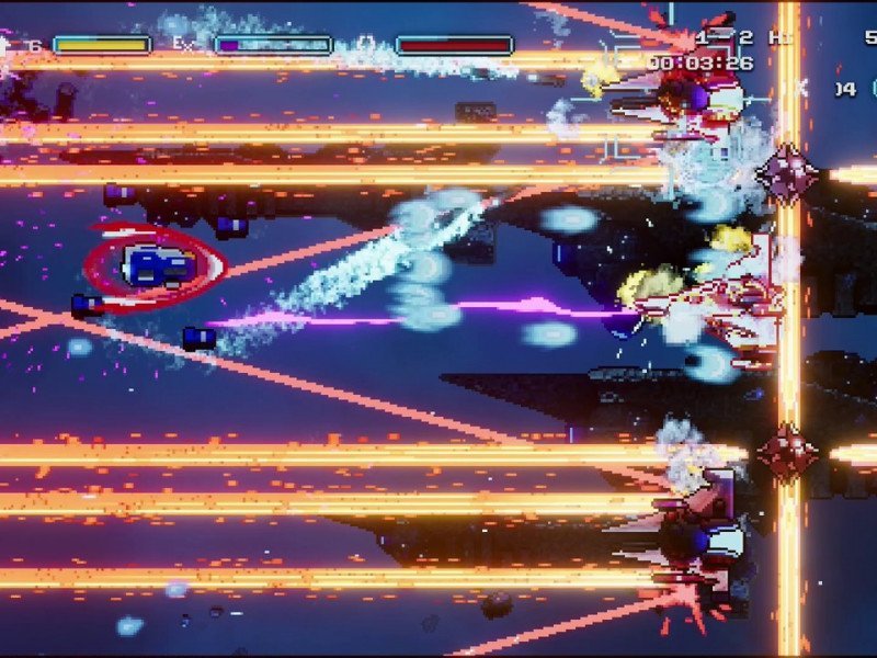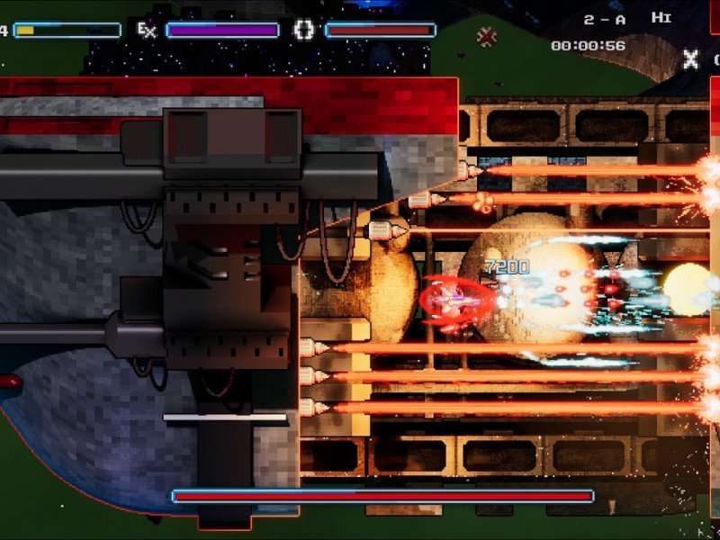 Développé par HitP Studio, Schildmaid MX est un shoot'em up spatial en 2D à défilement horizontal, proposant un gameplay original et unique basé sur les boucliers. Schildmaid MX ne propose pas de scénario ; au contraire, le jeu se concentre presque exclusivement sur l'expérience visuelle, communiquant directement par l'image et, surtout, par des projectiles lumineux. En somme, il s'agit d'une expérience arcade à part entière, mais conçue de manière transversale et étonnamment complexe. Ce n'est pas un hasard si le jeu débute par un tutoriel ludique, complet et très satisfaisant. Pas à pas, nous découvrons les mécaniques de jeu uniques que nous explorerons dans la section suivante, nous permettant ainsi de débuter l'aventure spatiale proposée par Schildmaid MX. Nous aurons à notre disposition trois types de vaisseaux, chacun possédant ses propres caractéristiques et offrant différentes manières d'aborder les mêmes aventures, conformément aux standards du genre. De plus, le jeu propose une série de niveaux à débloquer progressivement à votre rythme, à condition d'avoir accumulé suffisamment de monnaie virtuelle. Ces niveaux forment une sorte de campagne à la difficulté variable, et il existe également un mode EX , qui offre une interface similaire mais avec des options de jeu supplémentaires. En bref, les passionnés du genre, en quête d'une difficulté croissante et d'un niveau de difficulté stimulant, seront comblés.