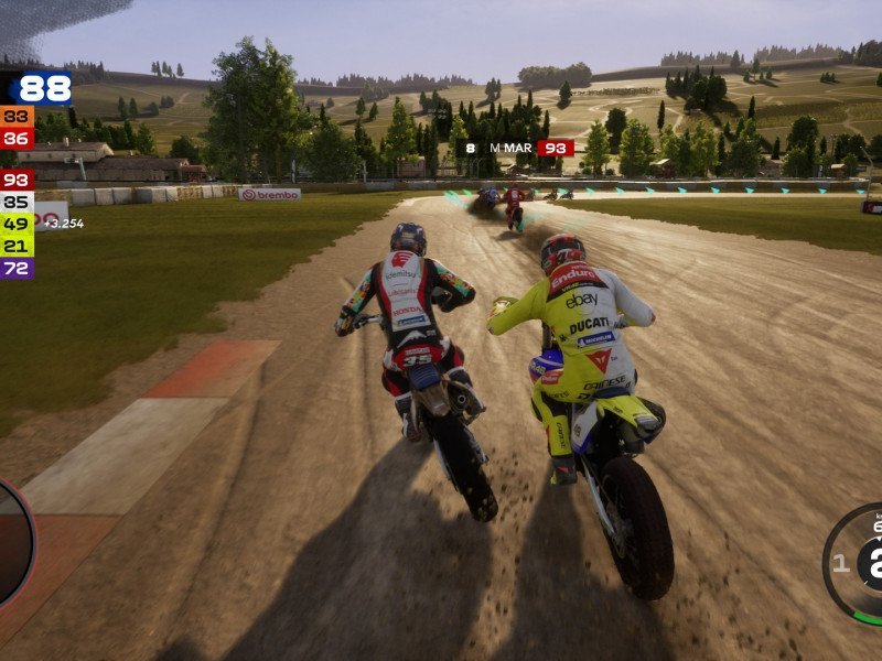 Le comportement des motos a été amélioré, avec une attention particulière portée à la physique des pneus et au retour d'information transmis au joueur. Dans les virages, le poids de la moto et la répartition des masses sont parfaitement perceptibles, et la moindre erreur, du mauvais freinage à l'accélération prématurée, peut coûter cher. Chaque course devient ainsi un défi riche en adrénaline, surtout avec les aides au freinage désactivées et le niveau de difficulté relevé. Pour compléter l'offre, de nouveaux modes alternatifs, comme les courses de motard et de flat-track, viennent casser le rythme et proposer des défis différents mais complémentaires à la carrière principale. L' intelligence artificielle mérite une mention spéciale : les pilotes adverses affichent un comportement plus agressif et réaliste que par le passé. Ils ne se limitent plus à suivre une trajectoire prédéfinie, mais se battent pour la position, exploitent nos erreurs et, dans certains cas, semblent même se souvenir des contacts précédents. Cela contribue à créer une atmosphère de tension constante en course, transformant chaque dépassement, chaque virage et chaque sortie des stands en une petite bataille. Le multijoueur en ligne bénéficie du cross-play et propose des salons stables, même si le mode carrière reste sans conteste l'élément le plus intéressant pour ceux qui recherchent la profondeur et une progression durable.