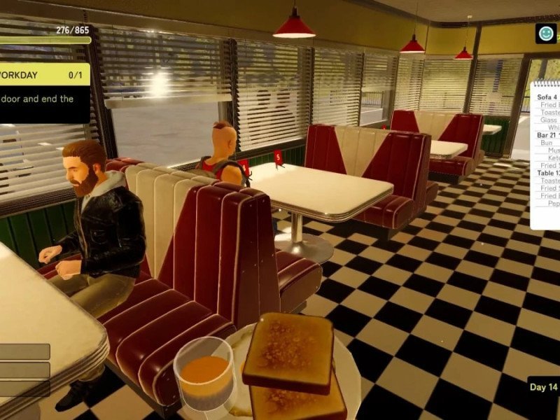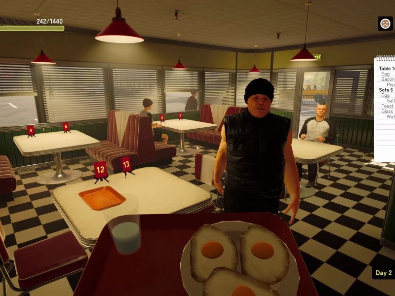 Développé et produit par NOSTRA Games, Road Cafe Simulator est un simulateur de gestion de café routier. Le jeu nous offre la possibilité de gérer notre propre établissement, de la préparation des aliments à la gestion et l'entretien de la boutique, en mode solo uniquement. Le cœur du jeu réside dans la gestion quotidienne du restaurant, où chaque journée réserve son lot d'interrogations. Nous devrons nous occuper de plusieurs tâches : commander les ingrédients, gérer les livraisons, cuisiner, servir les clients et garder les lieux propres. Le système de progression vous permet de débloquer progressivement de nouveaux ingrédients et fonctionnalités. Nous commençons à développer un café avec un petit budget de départ, destiné à l'achat de produits. Les œufs seront les produits principaux, et au niveau 14, d'autres types de produits seront disponibles, ce qui compliquera l'exécution des commandes et élargira les possibilités d'action en cuisine. La recette de départ sera des œufs brouillés, hot-dogs, sandwichs et boissons sont également inclus. Un petit aspect économique du jeu nécessitera de maintenir un équilibre dans les dépenses et de prendre en compte le budget pour les commandes ultérieures. À 9 heures du matin, le café ouvre et les premiers clients arrivent. Le joueur prend lui-même les commandes et les traite. Grâce à un patch, des délais d'exécution ont été ajoutés. Tous les clients non servis partent à 21 heures. Le titre ne comporte aucune intrigue, mais se concentre sur la progression de votre restaurant à travers un système de mise à niveau et de popularité. La satisfaction du client influence directement le succès du lieu, nécessitant une attention particulière à la qualité du service et à la rapidité de préparation.