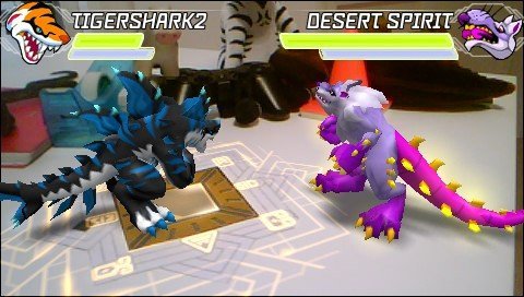 InviZimals requiert obligatoirement l'usage de la caméra PSP pour fonctionner. Il utilise le principe de la réalité augmentée, et le concept du jeu vous sera expliqué en début de partie par un ingénieur, Kenichi Nakamura. Concrètement, la caméra permet de détecter des créatures invisibles, et il faudra donc scanner son environnement pour trouver votre premier InviZimal. Sachez néanmoins que les petits monstres réagissent à la couleur, et que certaines espèces ne se cacheront que sur un fond correspondant (exemple un monstre vert sur un tapis vert). Equipé de votre PSP, vous devrez donc partir dans tous les coins de votre appartement (ou de votre maison) à la recherche d'autres InviZimals. Voilà qui promet. Et ce n'est pas fini. Une fois que vous aurez localisé l'animal, il faudra utiliser la carte piège pour le faire apparaître. Pas de Pokéball pour l'attraper, mais une sorte de mini-jeu assez au concept assez original, mais pas toujours très maniable cela étant. Comme dans Pokémon justement, les duels seront également au centre d'InviZimals. Chaque bestiole dispose d'une jauge représentant sa santé, mais aussi une d'endurance.