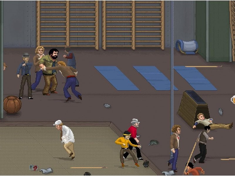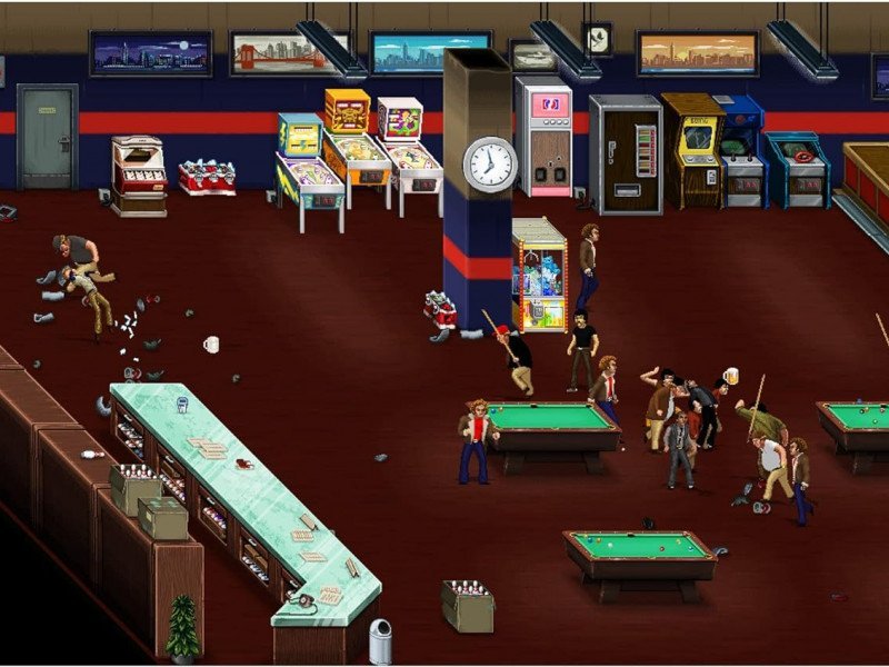 Le mouvement des personnages est acceptable, offrant une mobilité satisfaisante à Bud et Terence. Cependant, lorsqu’il s’agit de combattre des ennemis, l’expérience devient monotone. Pendant la majeure partie du jeu, nous avons fini par écraser les boutons à plusieurs reprises pour attaquer les méchants. C'est courant dans le genre, mais ici, cela semble quelque peu sans inspiration et imprécis. On n'éprouve pas ce plaisir ou cette satisfaction à « tabasser un clochard » comme dans d'autres beat'em ups. Même lorsque nous sommes au milieu d'un combo contre un ennemi, il est souvent capable d'ignorer les dégâts et de contre-attaquer. Cela crée le sentiment que peu importe nos efforts pour bien jouer, nous continuerons à être constamment attaqué. De plus, certaines sections présentent un nombre important d'ennemis à l'écran, ce qui amène la caméra à élargir l'angle, rendant les personnages de la scène minuscules. Ce fouillis visuel contribue au chaos à l’écran et rend certaines parties fatigantes et inintéressantes. Ce qui nous a motivé à continuer à jouer, ce sont les autres éléments que propose le jeu, comme de nouvelles scènes avec des blagues simples suivies de mini-jeux ou des sections de combat supplémentaires contre des ennemis qui ne sont pas très difficiles.