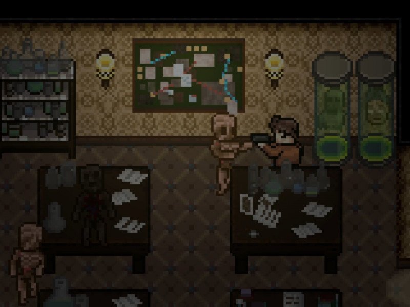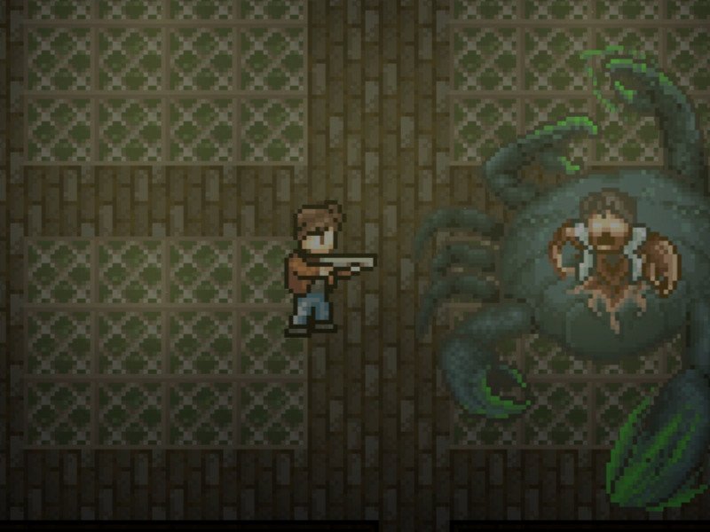 Graphiquement parlant, Dead of Darkness offre une atmosphère rétro et clairement nostalgique, renforcée par un pixel art de qualité qui, bien que recyclé à plusieurs reprises, parvient à être convaincant et efficace. Même les horreurs, y compris les cauchemars liés à la santé mentale (et pas seulement), sont bien représentées à l'écran, malgré une limitation technique évidente. De plus, des illustrations 2D statiques donnent du caractère aux différents personnages. La bande sonore est de bonne qualité, offrant un bon accompagnement sans être redondante ni gênante. Aucun morceau mémorable n'est à signaler, mais on peut néanmoins ajouter un bon doublage en anglais et une utilisation judicieuse, quoique limitée, des bruits d'ambiance. La présence de sous-titres en français est à souligner et à apprécier , malgré quelques petites erreurs. Il convient également de mentionner la possibilité de combat rapproché mentionnée précédemment … qui, malheureusement, n'est pas aussi satisfaisante qu'elle le devrait. Le problème réside dans un système de hitbox inefficace, grossier et imprécis. Il faut se rapprocher très près des ennemis et les coups portés ne font pas toujours mouche. De plus, plus on se rapproche, plus on risque de se faire tabasser. Cela se traduit par des attaques éclair rapides, amusantes et inconfortables. Si l'on ajoute à cela que les tirs rapprochés font beaucoup moins de dégâts que les balles, on comprend que ce type d'armes n'est utile qu'en cas d'extrême urgence.