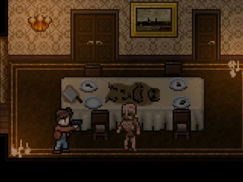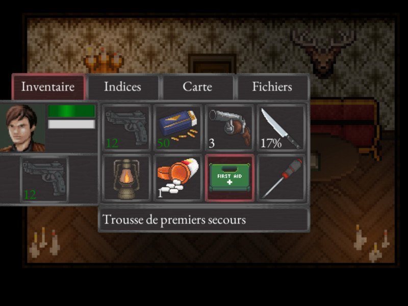 Dead of Darkness est un survival horror 2D à la troisième personne extrêmement classique qui reprend la structure du gameplay du premier Resident Evil et la transpose dans un plan pixellisé en deux dimensions. En bref, comme dans son prédécesseur de Capcom, nous nous retrouvons ici coincés dans un manoir aux prises avec des horreurs inexplicables, mais qui, tels les célèbres zombies, ne nous épargnent pas leur rage aveugle et brutale. Face à une telle férocité, nous disposons de peu de munitions et d'armes contondantes qui s'usent à force d'utilisation. Concernant les armes , il n'y en a qu'une au départ, mais nous pourrons bientôt en débloquer d'autres en les localisant et en résolvant les énigmes environnementales correspondantes. Cependant, les armes seules ne suffisent pas : il faut des munitions, et celles-ci sont très limitées. Certes, le titre propose différents modes de difficulté avec plusieurs aides disponibles, mais le mode « standard » est assez punitif. La raison est simple : Dead of Darkness ne vous pousse pas au combat, bien au contraire. Compte tenu du nombre d'ennemis (esthétiquement peu varié) et de leur santé, il est clair que le titre encourage à les éviter, ce qui nous fait courir d'un endroit à l'autre, poursuivis par des monstres, heureusement pour la plupart lents et maladroits. Bien sûr, les zones restreintes n'arrangent rien et il peut arriver que vous soyez blessé. Heureusement, il existe des objets consommables capables de soigner à la fois la santé et la santé mentale. Cette dernière diminue à chaque coup et peut entraîner des visions ou des complications diverses en exploration et en combat. Ici aussi, comme pour les munitions , les objets curables sont rares et doivent donc être utilisés avec parcimonie. L'exploration, quant à elle, suit un modèle extrêmement classique et nostalgique, mais efficace. Il s'agit d'étudier les lieux et d'enchaîner une séquence chronologique d'énigmes composées d'objets à trouver et à utiliser au bon endroit. Certes, toutes les énigmes ne sont pas obligatoires, mais nous vous suggérons d'explorer chaque recoin pour collecter un maximum de bonus et révéler quelques petits bonus narratifs.