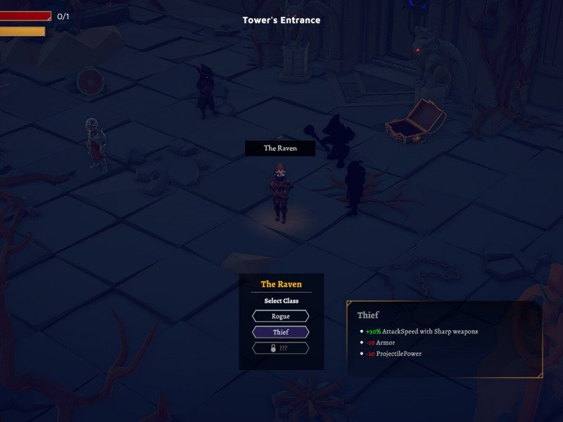 Développé par Archmage Games Studios, God of Weapons est un jeu d'action roguelike 3D à la troisième personne et à caméra fixe proposant des combats automatisés en arène contre des hordes d'ennemis procéduraux. Les ténèbres se sont abattues sur le monde, la dernière lumière a été volée, et le chaos et la morosité règnent partout. Des hordes d'ennemis infestent la création, et le peuple est désormais privé de tout espoir. C'est le début flou et confus de God of Weapons, où une poignée de combattants anonymes, identifiables uniquement par leur classe (qui est d'ailleurs résolument standard), doivent affronter des avalanches d'ennemis dans une certaine tour de Zhor . Malheureusement, l' histoire de God of Weapons s'arrête là, ne laissant aucune place à l'histoire, aux documents descriptifs ni aux dialogues. Nos héros sont tous totalement silencieux, et il est impossible d'échanger des mots, même avec les ennemis. Pire encore, même les lieux sont assez fades et vite répétitifs. En effet, le titre se concentre uniquement sur le gameplay, sacrifiant toute forme de narration. Même les ennemis manquent de caractérisation, apparaissant comme incroyablement standard et oubliables. L'absence de narration est regrettable, mais God of Weapons a bien d'autres atouts dans son sac. Il s'agit d'un jeu d'action 3D à la troisième personne avec une vue isométrique fixe (et donc non ajustable manuellement) proposant des combats de hordes chronométrés dans des zones fermées et bien définies, particulièrement étroites, et aux règles roguelike . Enfin, le système de combat est automatique : il suffit de courir et d'esquiver, et les armes font le reste d'elles-mêmes, agissant de manière autonome.