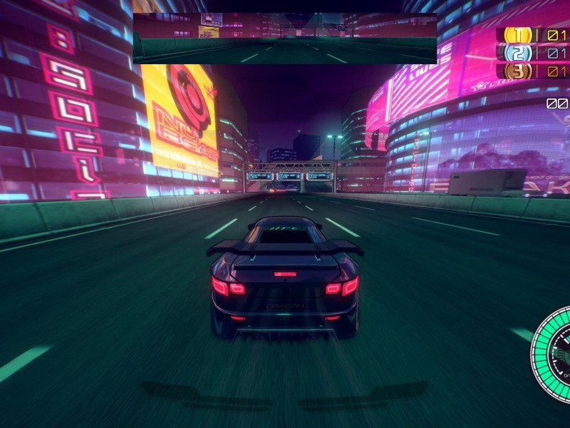 Il n'y a pas de pistes au vrai sens du terme. Au mieux, le joueur fait face à une autre voiture dans des duels 1 vs 1. S'il y a un multijoueur en ligne avec plus de véhicules sur la piste, les serveurs sont hélas déserts à l'heure actuelle. Le mode écran partagé fonctionne très bien et peut donner quelques minutes de plus de plaisir, bien qu'il n'y ait pas de collision du tout (et cela est expliqué avec une présentation au début). En revanche, certains véhicules sont tout simplement incontrôlables. Le vrai défi pour Inertial Drift doit être de faire un virage décent avec les voitures de rang supérieur. Elles vont de la maniabilité d'un char de combat avec une turbine à une toupie domestique tournant follement sur la piste. Il n'y a pas de juste milieu, les quelques voitures disponibles dans le jeu peuvent être classées en seulement trois catégories: facile, ok et impossible. Le plus gros défaut de Inertial Drift, pour ceux qui aiment sa mécanique ou ne se soucient pas du niveau de défi, est sa très courte durée. Il ne s’agit pas seulement de la «campagne». Le jeu a très peu de contenu pour le joueur: il y a un nombre très limité de véhicules, peu de pistes, peu de choses à faire ou à voir. Sans personnalisation ni évolution des personnages ou des voitures, la motivation pour continuer à jouer plus de deux heures est nulle. Si c'est une consolation, ce seront des heures très élégantes.