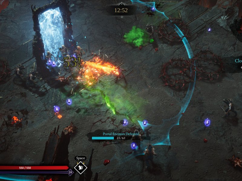 Le gameplay de Jotunnslayer: Hordes of Hel est axé sur l'action rapide, où les joueurs peuvent utiliser une variété de compétences et d'armes. Au départ, les joueurs peuvent choisir entre plusieurs classes, comme le Berserker, chacune dotée de capacités spécifiques qui définissent leur façon d'affronter les ennemis. Les mécanismes sont intuitifs : le jeu permet des attaques automatiques, permettant aux joueurs de se concentrer sur l'utilisation de capacités spéciales, comme la foudre qui détruit les ennemis proches. L'une des mécaniques les plus intéressantes est la possibilité d'obtenir des améliorations et des compétences au combat, rendant chaque partie unique. De plus, il faut une dimension stratégique pour choisir les compétences à améliorer et quand utiliser les plus puissantes, comme « Frappe Tonnerre », essentielle pour affronter les boss et les vagues d'ennemis. L'équilibre entre attaque, défense et récupération de santé rend le jeu à la fois stimulant et gratifiant. Bien que ce soit le cœur du jeu, il y a bien plus à débloquer, comme des armes, des skins, des modificateurs ou même des niveaux de difficulté et des trophées à gagner en remplissant certains prérequis. Certains s'obtiennent grâce aux pièces récoltées à chaque partie, d'autres en terminant les niveaux de difficulté supérieure. En fin de compte, cette quête constitue la rejouabilité du jeu. Ça n'en a peut-être pas l'air, mais il y a beaucoup à faire. De plus, un événement temporaire permet désormais de débloquer des skins d'armes supplémentaires.