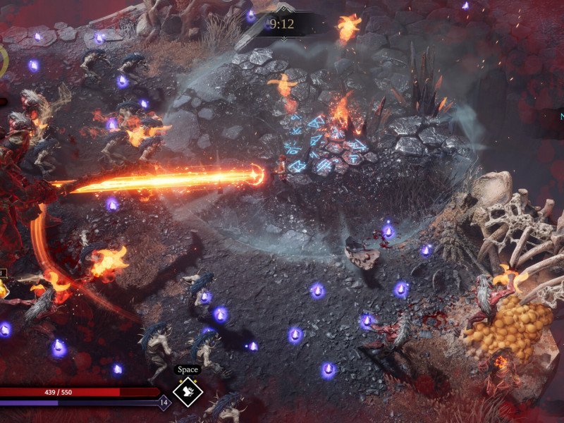 L'un des plus grands atouts de Jotunnslayer: Hordes of Hel réside sans conteste dans ses graphismes. Les environnements sont détaillés et les visuels, notamment ceux liés aux pouvoirs divins, sont spectaculaires. Jotunnslayer est un jeu magnifique et optimisé, avec peu de pertes d'images, même lorsque l'action est intense, et parfois, de nombreuses créatures peuplent notre zone de jeu relativement restreinte. Il faut savoir que ces graphismes ne permettent pas d'affronter des centaines d'ennemis comme dans certains jeux en pixel art, mais le sentiment d'être submergé par leur nombre est toujours présent. Le problème avec certaines dees compétences est que leurs effets ne sont pas toujours très clairs dans le petit texte de sélection, et même leur représentation visuelle n'est pas toujours claire à 100% sur les zones et les effets, mais il y a tellement de diversité d'options qu'il n'est pas facile d'avoir une course qui soit exactement la même, quelque chose aidé par les interdictions et les relances de compétences traditionnelles que nous avons, qui, bien que non infinies, sont généreuses. La bande-son, basée sur une musique épique, se fond bien dans le thème de fond, et à aucun moment elle n'a semblé couper le rythme du jeu. Les mécanismes de jeu, simples au départ, s'enrichissent au fil du jeu, offrant une variété de combinaisons de compétences et de stratégies. De plus, le rythme effréné et la nécessité de survivre rendent chaque partie palpitante. En revanche, le jeu semble souffrir de certaines limitations. La variété des ennemis et des boss est limitée et pourrait devenir répétitive à la longue. De plus, certaines capacités semblent déséquilibrées, des pouvoirs comme « Frappe Tonnerre » devenant presque indispensables à la progression, limitant la liberté du joueur d'explorer d'autres stratégies. Le système de contrôle pourrait également être amélioré pour fluidifier certaines actions, comme le changement de capacité.