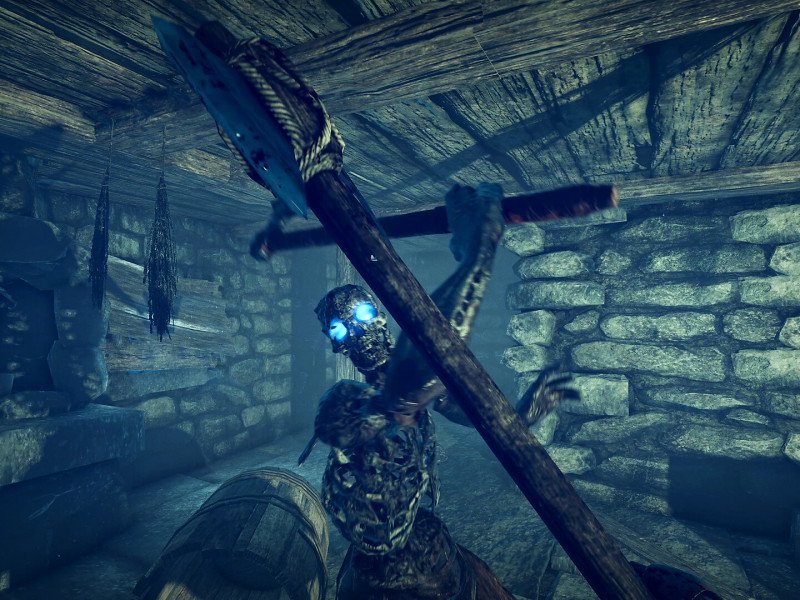 Malheureusement, au-delà de la qualité et de l'immersion garanties par le système de combat bien structuré, qui nous demandera d'esquiver et de frapper sans arrêt, quelques petits problèmes rendent le tout moins engageant : les hitbox dansantes et les interpénétrations polygonales qui se produisent pendant les combats finissent par briser le sentiment d'identification, ainsi que la physique qui gère les collisions avec certains éléments du décor. Tout bien considéré, malgré ses défauts évidents, Undead Citadel est globalement divertissant, sans excès : la campagne est très linéaire et prévisible, et les énigmes de base à résoudre ne sont pas particulièrement captivantes, impliquant presque toujours de fouiller des huttes trop similaires. Mais la somme de tous ces éléments reste divertissante. Certes, on est loin des hauteurs atteintes dans Behemoth. Graphiquement parlant, Undead Citadel sur PSVR2 tient la route. Les décors médiévaux sont sombres et captivants, avec une bonne utilisation de l'éclairage et des textures suffisamment détaillées. Le design des créatures est excellent, convaincant et complète efficacement l'impact visuel global, qui gagnerait à être mis en lumière avec brio. L'équipe son fait un excellent travail, avec des effets sonores convaincants et une bande-son qui accompagne l'action sans voler la vedette.