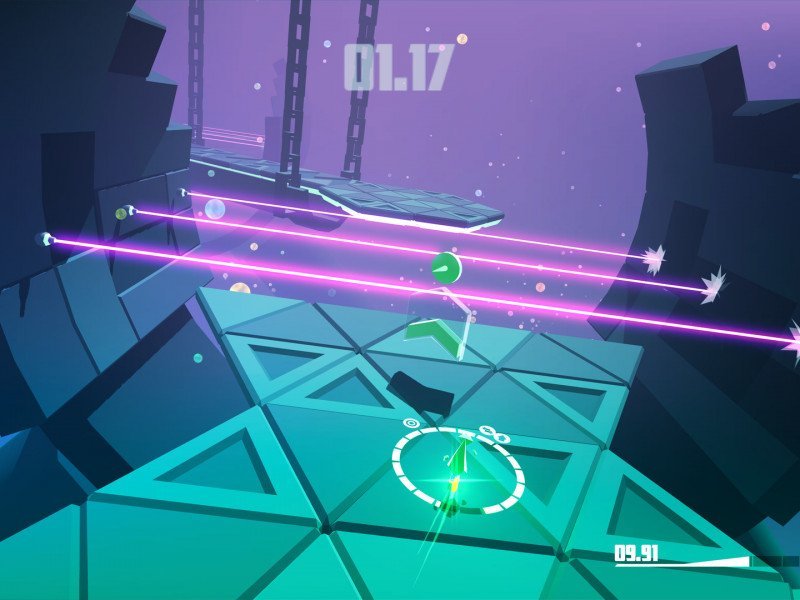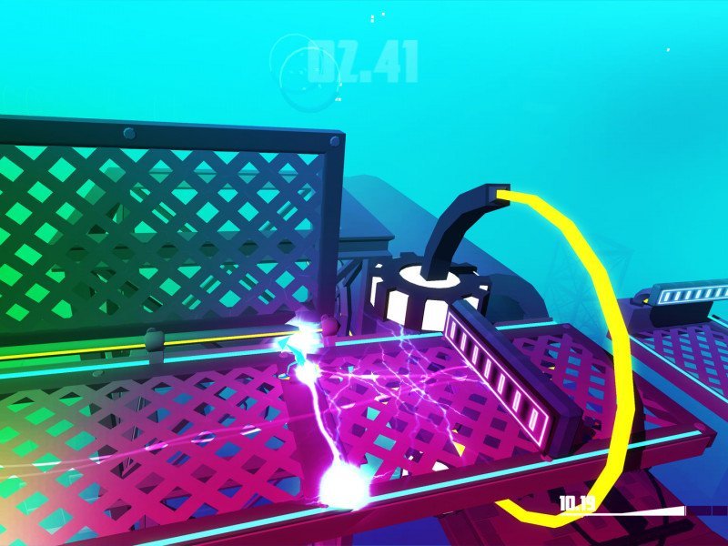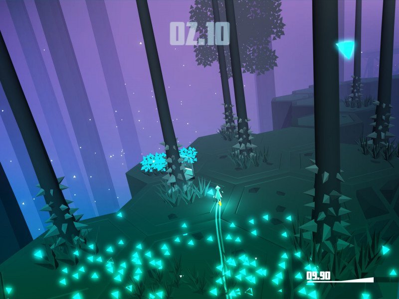 La combinaison de vitesse, de brouillard et de virages serrés de Razed rendait cela impossible la plupart du temps. La distance d'affichage est réduite par le brouillard, obscurcissant le chemin immédiat. Plus problématiques sont les fréquents angles droits et demi-tours imposés par la conception du niveau. Ces angles serrés s'accordent bien avec les graphismes low poly et géométriques de Razed , mais ils rendent les virages impitoyables et empêchent de voir au-delà du virage suivant. Ce qui a donné lieu à de nombreux tâtonnements, et il a fallu perdre la partie en essayant de comprendre exactement ce qu'il fallait faire. Le cycle de répétitions des jeux de plateforme contre-la-montre est désormais familier, et le redémarrage instantané, désormais standard, atténue un peu le jeu, mais masque les problèmes sous-jacents du parcours. Il est arrivé de se retrouver projeté dans les airs, de tomber et de mourir, sans comprendre ce qui se passait ni ce qu'il fallait faire, jusqu'à ce qu'on revienne deux ou trois fois dans la même zone et meure en essayant de l'analyser. Prenons l'exemple des ressorts : l'angle sous lequel nous les percutons modifiait radicalement la trajectoire, et la plupart du temps, débouchait vers un traquenard car les bords de la piste sont aussi des pics mortels. Même les sauts peuvent varier énormément. Nous sautions souvent du même endroit pour finalement mourir, soit parce qu'on avait tourné un peu trop et perdu de la vitesse, soit parce que nous n'avions pas décollé au bon angle. Ses collisions sont même irrégulières. Les pentes sont les pires, la physique devenant vraiment imprévisible et nécessitant un contrebraquage pour contrer la gravité, ce qui est très dangereux vu la maniabilité du véhicule.