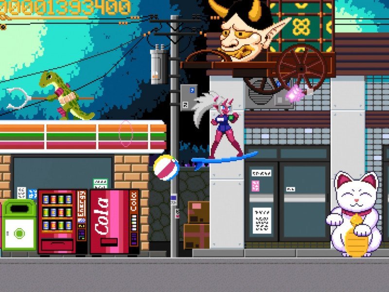 Développé par Super16bits, Twilight Parade: Moonlit Mononoke est un shoot'em up classique en 2D à défilement horizontal, conçu principalement pour les nouveaux joueurs. Comme son titre l'indique, Twilight Parade : Moonlit Mononoke n'a pas grand-chose à dire, bien au contraire. Et c'est vraiment dommage, car l'idée de base, bien que simple et banale, aurait pu être bien plus intéressante. En bref, les protagonistes, un groupe d'oni plantureuses et puissantes, n'ont pas été invitées à une sorte de méga-parade rassemblant une multitude de yokai. Plus précisément, il s'agit des célébrations du Hyakki Yagy? , ou « le défilé nocturne des cent yokai ». Il s'agit d'une tradition japonaise selon laquelle, chaque année, des centaines de y?kai envahissent les rues de la ville, exclusivement la nuit. Le folklore japonais a toujours exercé une fascination indéniable, et c'est l'une des raisons pour lesquelles nous nous attendions à davantage. Au lieu de cela, après une introduction écrite, nous sommes littéralement plongés dans l'action sans le moindre développement narratif. Il est également à noter qu'il n'y a même pas de conclusion… Après avoir terminé le cinquième et dernier niveau, le générique défile immédiatement, nous ramenant au menu d'ouverture, pour le moins décevant. Oui, Twilight Parade : Moonlit Mononoke ne compte que cinq niveaux , pour une durée de vie totale inférieure à une demi-heure. La raison ? Le jeu est d'une simplicité déconcertante : pas de véritable fin de partie et des « continuations » quasi infinies. À cela s'ajoutent quatre personnages seulement, chacun arborant une apparence légèrement suggestive, dont une oni plantureuse chevauchant une banane géante… Chaque oni est accompagné d'un petit familier servant de feu supplémentaire, mais, esthétiquement mis à part, ils se ressemblent tous, rendant les parties suivantes particulièrement superflues. Bref, Twilight Parade : Moonlit Mononoke est un shoot'em up 2D à défilement horizontal frénétique qui ne cherche pas à innover. C'est une expérience très rétro, presque arcade… à ceci près que le système de score est quasiment optionnel et constamment gâché par des continues infinis et des situations quasi impossibles.